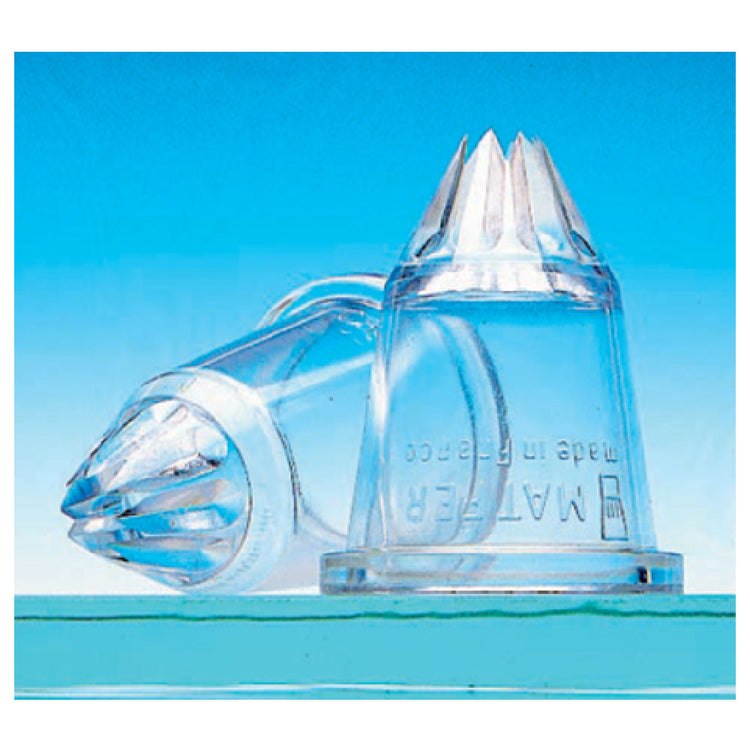 The Matfer 167015 Decorating Tube Tip 1/8" (3mm) Dia. Star Shape is an expertly crafted tool designed for precision and creativity in professional pastry applications. Featuring a star shape with 8 distinct teeth, this decorating tube tip allows for intricate and detailed designs, adding a touch of elegance and sophistication to any culinary creation. Made from transparent polycarbonate, this decorating tool offers durability and ease of use, ensuring that chefs and bakers can see the contents as they work, optimizing precision in their designs. The 3mm diameter of the tip is perfect for creating delicate patterns, making it a favorite among pastry chefs who require both finesse and reliability in their tools. It comes in a convenient pack of two, identified by tube number A8, ensuring that users have a backup or can work on multiple projects simultaneously. This versatile tool is suitable for various markets within the culinary industry, from bakeries to high-end restaurants, where decorative detail is paramount. The Matfer 167015 Decorating Tube Tip is a testament to quality and functionality, embodying the fine craftsmanship expected by professionals who demand high standards in their kitchen equipment.