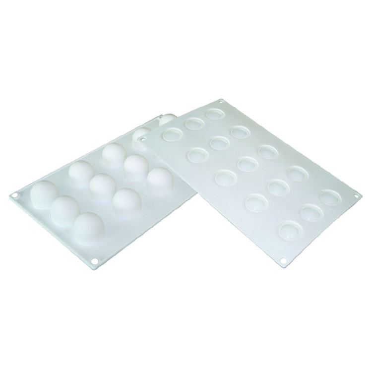 The Matfer 258311 Silikomart® 3D Mold "Mini Truffles" 11-3/4"L x 7"W is a high-quality, versatile silicone mold designed for culinary professionals and hobbyists who seek precision and creativity in confectionery and dessert making. This innovative mold allows users to create 15 perfectly shaped spheres, each measuring 1-1/10" in diameter and 1-1/4" in height. These dimensions make it ideal for crafting exquisite mini truffles with consistent size and shape, enhancing both presentation and portion control. Constructed from flexible, non-stick silicone, the mold ensures an effortless release of delicate creations without compromising their intricate details. The mold's non-stick properties also facilitate easy cleaning and maintenance, contributing to a more efficient workflow in busy kitchens. Made in Italy, this product reflects the renowned Italian craftsmanship and attention to detail. Its white color adds a touch of elegance and professionalism to any kitchen setting. Whether used in pastry shops, gourmet restaurants, or home kitchens, the Matfer 258311 Silikomart® 3D Mold "Mini Truffles" provides an exceptional tool for culinary innovation and excellence in the creation of artisanal desserts and treats.