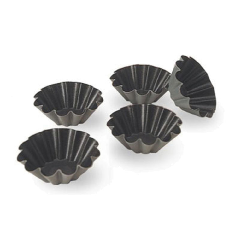 The Matfer 330621 Exopan® Brioche Mold 12 Flutes 2-3/8" Dia. X 3/4"H is a high-quality baking mold designed for professionals who demand precision and reliability in their culinary tools. This brioche mold features a non-stick surface, which allows for easy release of delicate pastries, ensuring an impeccable finish every time. Crafted from durable steel, the mold is PTFE coated, which enhances its non-stick properties and extends its lifespan. The exterior is finished with a grey lacquer that not only provides an aesthetically pleasing look but also facilitates the diffusion of heat, promoting even baking. With dimensions of 2-3/8 inches in diameter and 3/4 inches in height, this mold is perfectly sized for creating individual brioche servings. The mold includes 12 flutes, which add a classic and elegant touch to the baked goods. Packaged in sets of 25, this product is ideal for commercial bakeries, culinary schools, and gourmet kitchens that require consistent, professional results. The Matfer 330621 Exopan® Brioche Mold combines superior craftsmanship with functional design, making it a valuable asset for pastry chefs and baking enthusiasts who value quality and performance in their kitchen equipment.