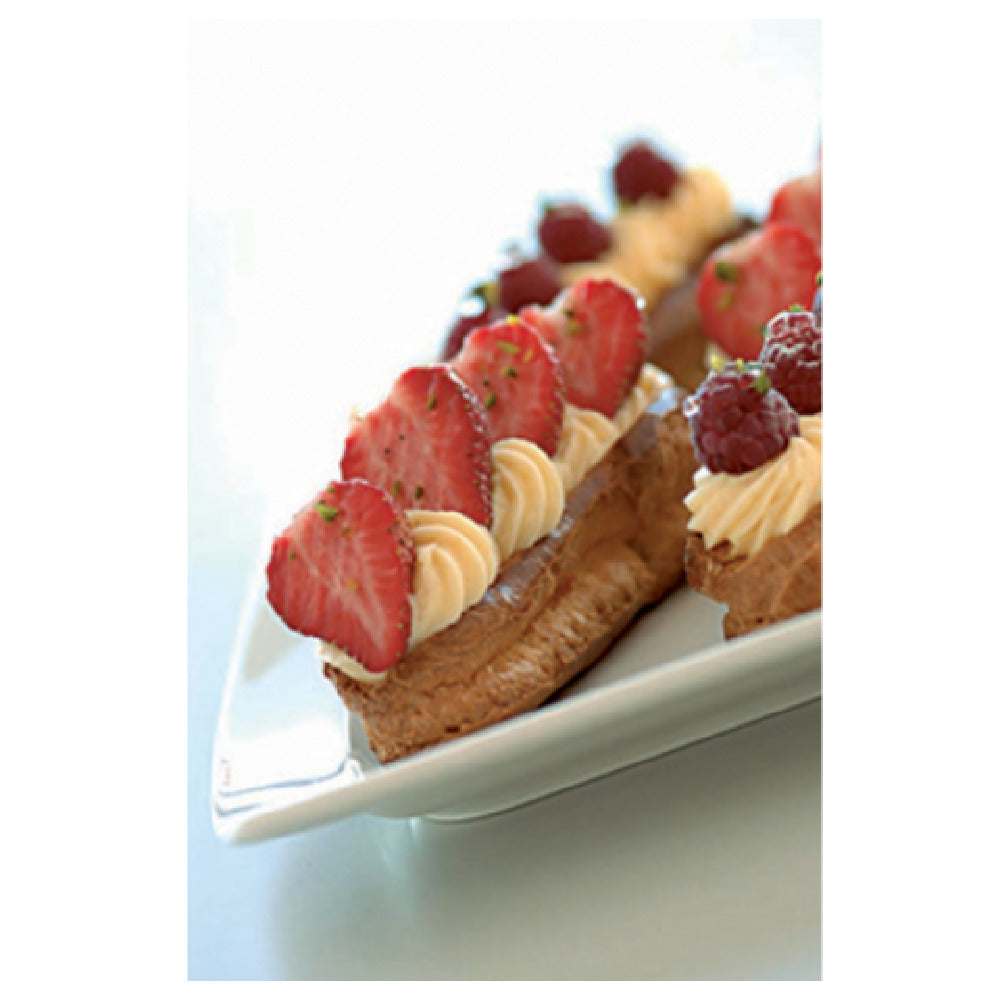 The Matfer 337002 Silform® Eclair Mold is a professional-grade baking mold designed to streamline the production of éclairs. Each sheet accommodates 18 molds, with each mold measuring 5 inches in diameter and 1 inch in height. The overall sheet dimensions are 23-3/4 inches in length and 15-3/4 inches in width, allowing for efficient use of oven space. Crafted from silicone aerated knitted fiberglass fabric, this mold ensures consistent heat distribution and optimal baking results, accommodating temperatures up to 350 degrees Fahrenheit. Its unique construction contributes to even baking and easy release of baked goods, minimizing the risk of deformation and preserving the delicate texture of éclairs. This product is NSF certified, signifying its adherence to strict public health and safety standards. Manufactured in France, the Matfer 337002 Silform® Eclair Mold is a valuable asset for professional patisseries, large-scale bakeries, and culinary institutions that demand high-quality, reliable baking tools. Its technical specifications and thoughtful design make it an ideal choice for culinary professionals seeking durable and efficient baking solutions.