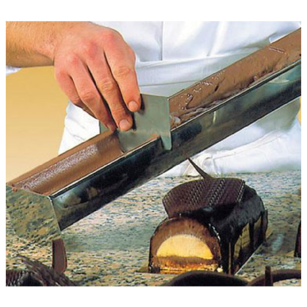 The Matfer 341629 Buche Cake Comb is a specialized tool crafted for professional pastry chefs and baking enthusiasts, designed to perfectly complement the 3-1/8" Buche mold. This precision-engineered comb is made from durable stainless steel, ensuring longevity and resistance to corrosion. It offers exceptional functionality by creating intricate patterns on the surface of Buche cakes, enhancing their aesthetic appeal. The specific dimensions of this cake comb make it a perfect fit for molds of the stated size, providing consistent and professional results every time. The stainless steel construction not only guarantees a high level of hygiene but also facilitates easy cleaning, making it an indispensable tool in both commercial kitchens and home bakeries. With its ability to deliver precise and uniform designs, the Matfer 341629 Buche Cake Comb is tailored to meet the needs of the pastry industry, supporting culinary creativity and excellence. Its robust build quality and specialized design cater to different market segments within the baking industry, from high-end patisseries to artisanal home bakers seeking to elevate their craft with professional-grade tools. This tool exemplifies Matfer's commitment to quality and innovation in the culinary world.
