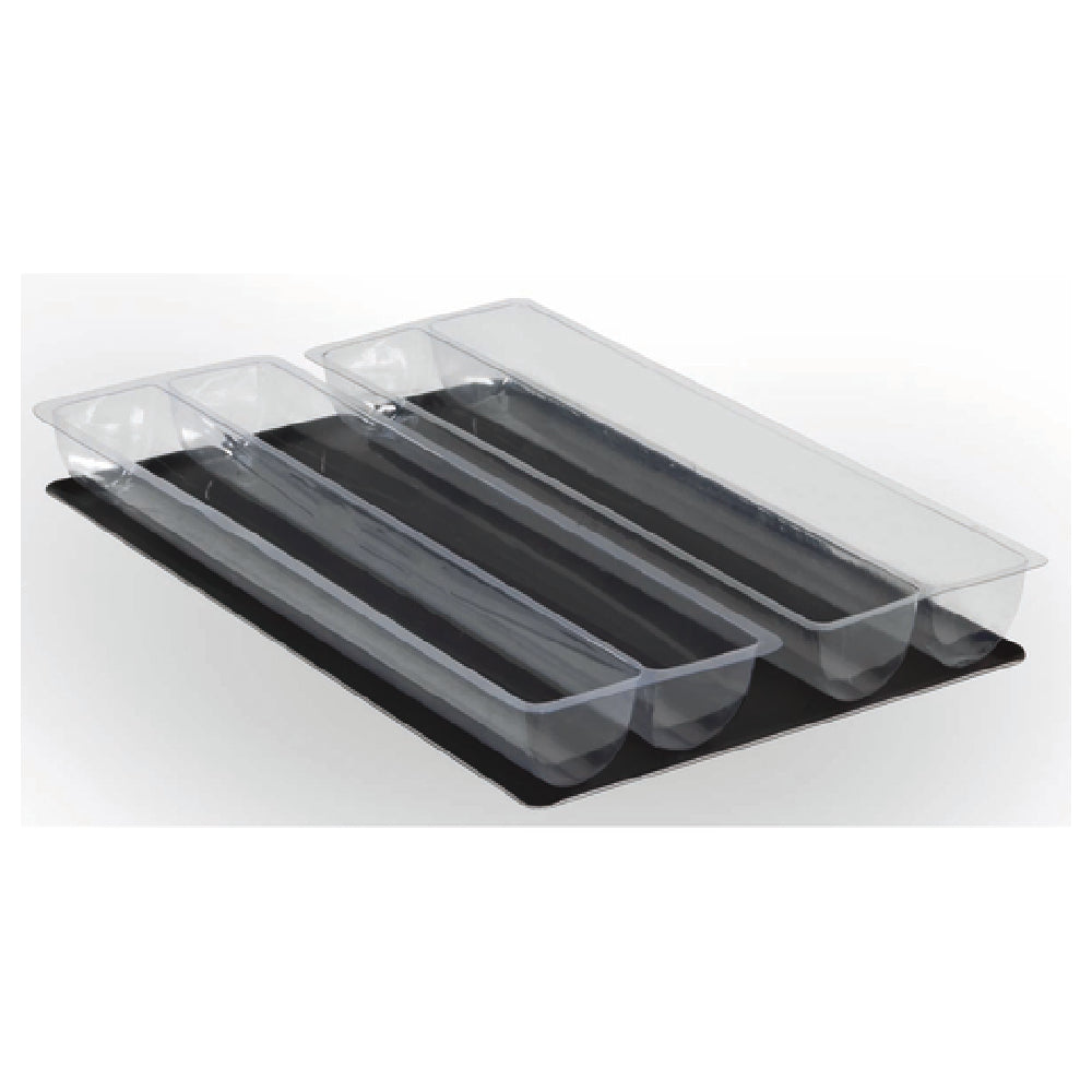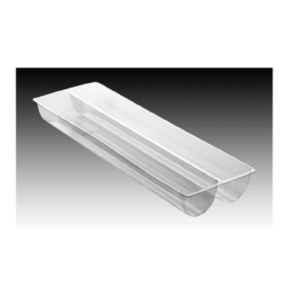 The Matfer 362001 Buche Cake Mold is a precision-engineered baking tool, measuring 22-1/2 inches in length, 3-1/4 inches in width, and 2-1/2 inches in height, ideal for creating intricately designed buche cakes. Crafted from durable PVC material, this semi-circular mold ensures consistent shape and size, catering to the needs of professional pastry chefs and home bakers alike. The overall dimensions of the product are 23-1/4 inches in length and 7-3/4 inches in width, providing ample space and stability during the baking process. Each box contains 10 pairs of molds, making it a practical choice for high-volume production environments, such as commercial bakeries and patisseries. The semi-circular design of the Matfer 362001 allows for creative versatility, accommodating a variety of fillings and decorations to suit different culinary styles and preferences. Its construction emphasizes durability and ease of use, making it a favored tool in the industry. This product is packed by the box, ensuring safe and efficient delivery. The Matfer 362001 Buche Cake Mold stands as a testament to quality and functionality, offering a reliable solution for those seeking precision and excellence in their baking endeavors.