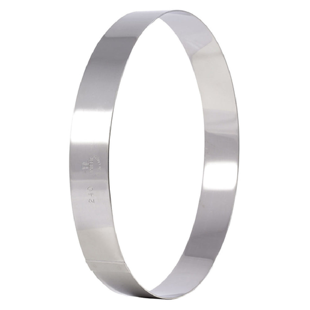 The Matfer 371201 Entremets Ring 4-1/4" ID x 1-3/8"H Round is an essential tool for professional and home bakers alike. Crafted from high-quality stainless steel, this bottomless ring provides exceptional durability and resistance to wear, ensuring consistent results in every use. Its precisely defined dimensions - 4-1/4 inches in internal diameter and 1-3/8 inches in height - make it the perfect choice for creating uniform entremets, mousses, and other confectionery delights with professional finesse. The round shape is ideal for culinary experts focusing on precision and presentation, while the absence of a bottom allows for easy removal and a flawless finish. This tool seamlessly serves various market segments, including patisseries, gourmet restaurants, and baking enthusiasts who value quality and attention to detail. Its stainless steel construction ensures it is easy to clean and maintain, making it a reliable choice for frequent use. The practicality and simplicity of the Matfer 371201 Entremets Ring make it an indispensable asset for anyone committed to achieving high standards in their culinary creations.