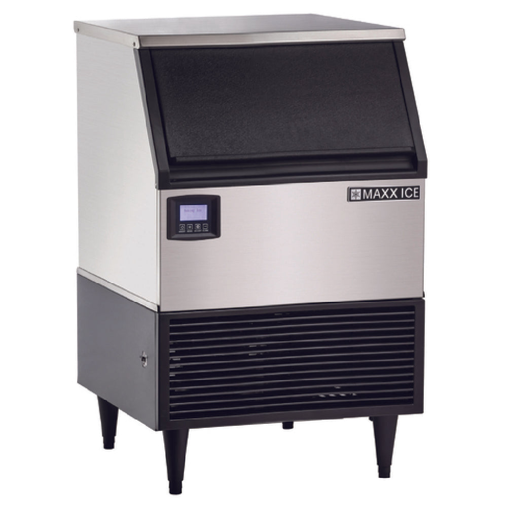The Maxximum MIM150NH Maxx Ice Digital Undercounter Ice Maker With Bin is an advanced solution for establishments seeking reliable ice production. This ice maker is designed with a cube-style (half dice) configuration, optimized for a wide range of commercial applications. With an efficient air-cooled, self-contained condenser, it can produce approximately 152 pounds of ice per 24-hour cycle, meeting high-demand scenarios effortlessly. Its built-in storage capacity of 75 pounds ensures a consistent supply of ice is readily available. The digital display and controls simplify operation, while features like automatic cleaning and overflow prevention enhance functionality and maintenance. An internal LED light provides clear visibility inside the stainless steel exterior, which is accentuated with black trim, offering both durability and a sleek appearance. The unit stands on 6-inch adjustable legs, allowing for easy installation in various under-counter spaces. Utilizing R134a refrigerant, the Maxximum MIM150NH is both environmentally conscious and efficient. It is certified by NSF and cULus, and holds the ENERGY STAR® rating, underscoring its commitment to energy efficiency. This makes it an ideal choice for restaurants, bars, and other venues requiring a dependable and efficient ice production solution.