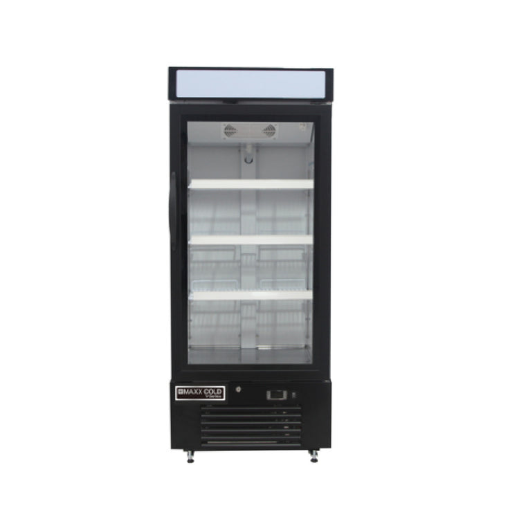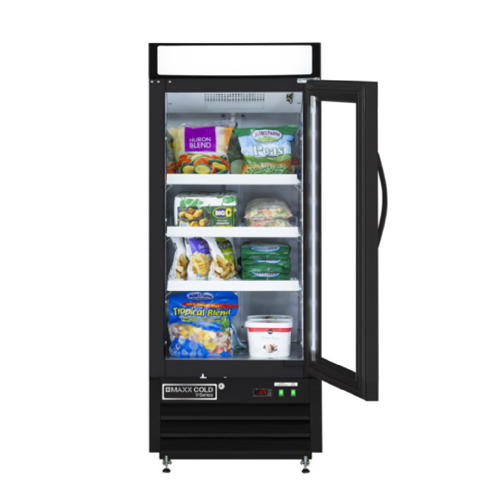 Maxximum, MVMF12B, Maxx Cold V-Series Merchandiser Freezer, 25"W, 12 cu. ft., (1) glass door, (3) adjustable heavy-duty PE-coated wire shelves, digital controls, LED display, black powder coated steel exterior and powder coated aluminum interior, self- contained bottom mounted compressor, R290a, cETLus, ETL-Sanitation (MVMF12B)