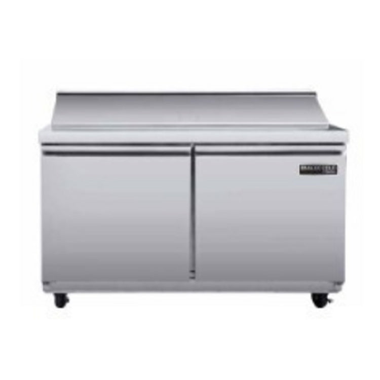 Maxximum, MVR48MHC, Maxx Cold V-Series Megatop Salad and Sandwich Prep Table, 48"W, 12.8 cu ft., (2) solid doors, (18) 4" deep 1/6 GN pans included, 9” deep polyethylene cutting board, adjustable heavy-duty wire shelves (1 per section/door), stainless steel exterior and powder coated aluminum interior construction, R290a, cETLus, ETL-Sanitation