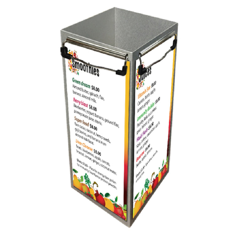 Menu Solutions, ATT4CLIP-BA, Table Tent, holds 4-1/4" x 11" inserts, quad panel, with low profile clip on four sides, aluminum (priced per each, minimum order 25) (Packed By: 25 Each Per Case)