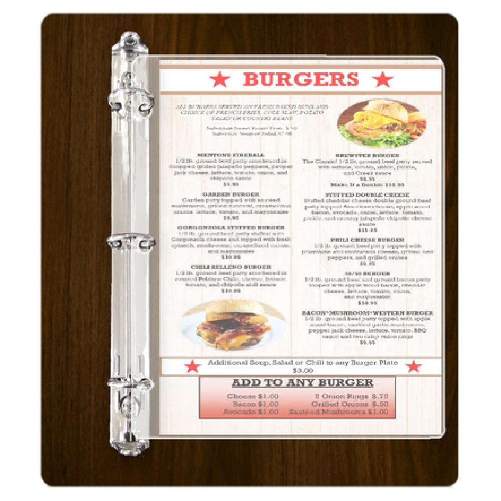 Menu Solutions, WD3RNG-A, Menu Board, holds 5-1/2" x 8-1/2" inserts, single panel, nickel three ring mechanism with 1/2" capacity, wood frame (priced per each, minimum order 25) (Packed By: 25 Each Per Case)