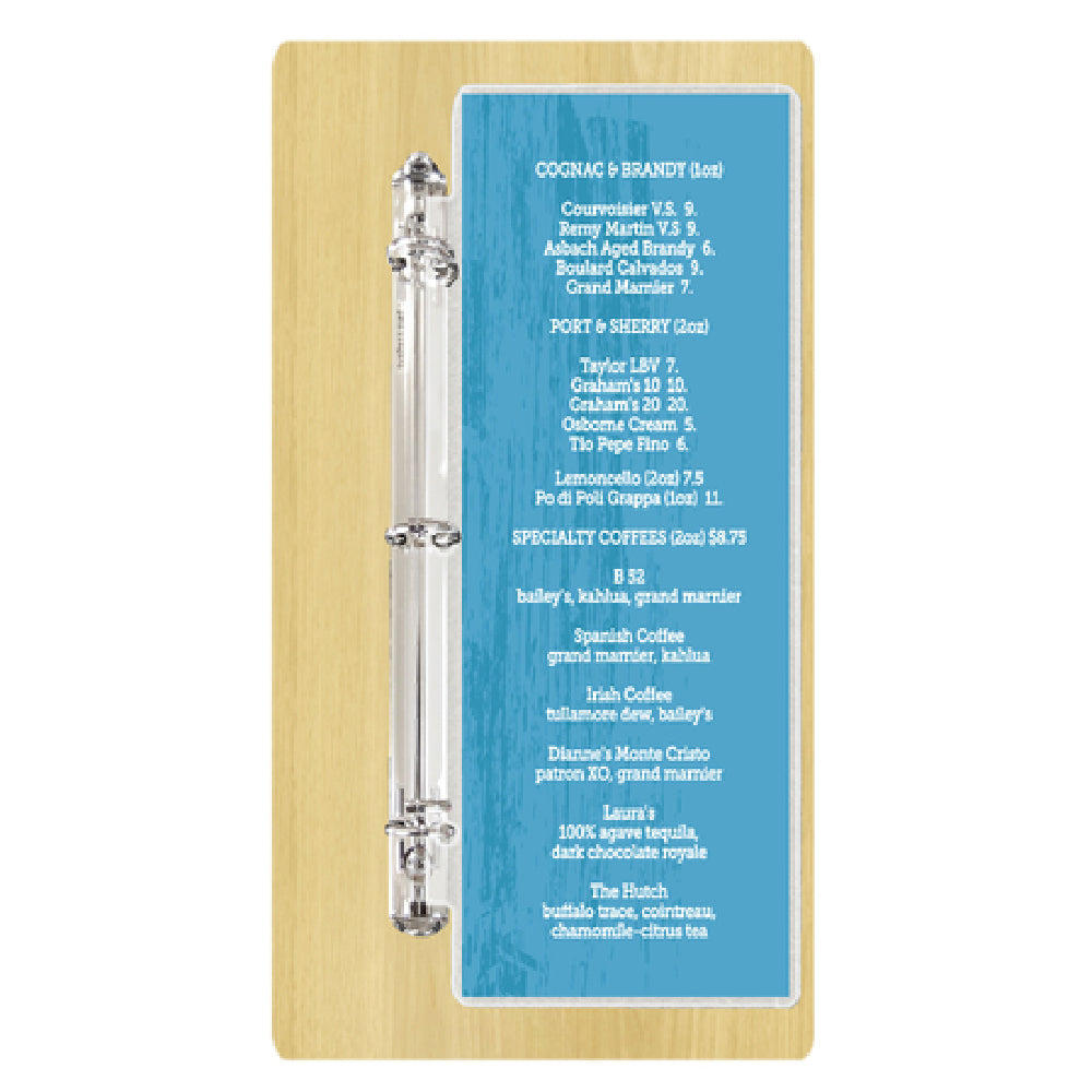 Menu Solutions, WD3RNG-BA, Menu Board, holds 4-1/4" x 11" inserts, single panel, nickel three ring mechanism with 1/2" capacity, wood frame (priced per each, minimum order 25) (Packed By: 25 Each Per Case)