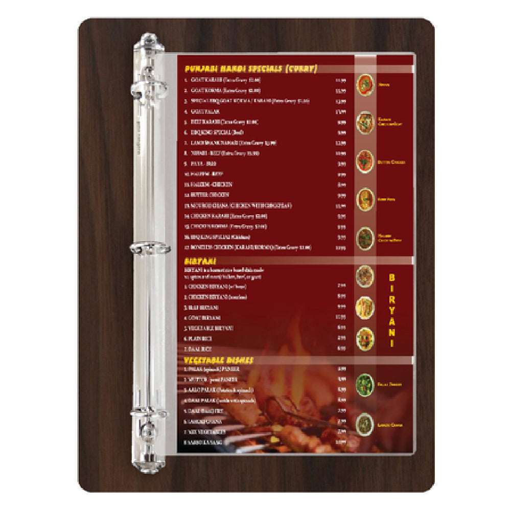 Menu Solutions, WD3RNG-C, Menu Board, holds 8-1/2" x 11" inserts, single panel, nickel three ring mechanism with 1/2" capacity, wood frame (priced per each, minimum order 25) (Packed By: 25 Each Per Case)