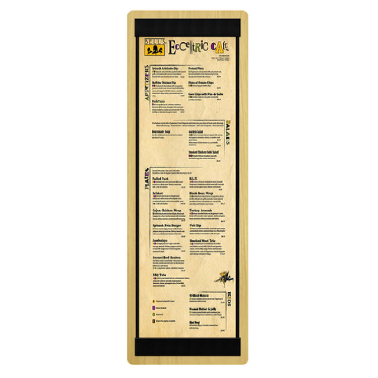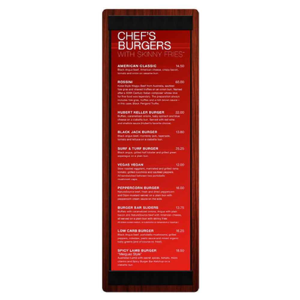 Menu Solutions, WDSTR-BD, Menu Board, holds 4-1/4" x 14" insert, double panel, includes top & bottom material strips on one side, wood frame (priced per each, minimum order 12) (Packed By: 12 Each Per Case)