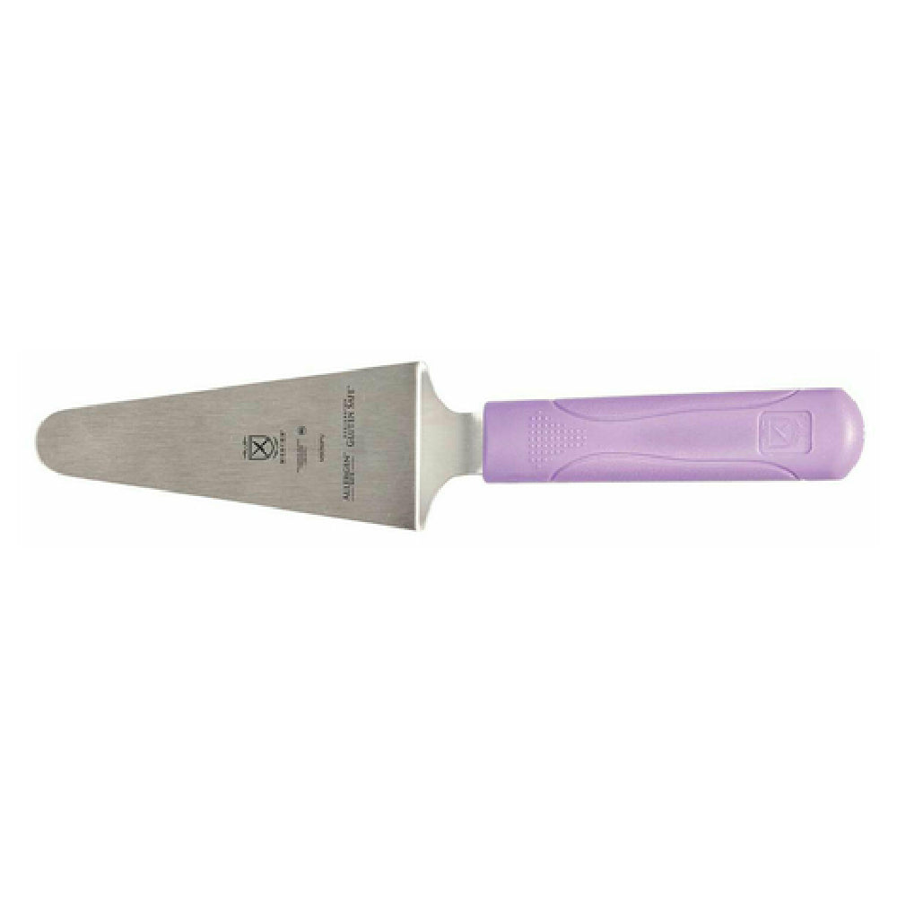 The Mercer Culinary M18760PU Millennia® Pie Server is a precision tool designed for efficiency and durability in professional culinary settings. With a blade size of 5 inches by 2 inches and an overall length of 10-1/2 inches, this pie server is crafted from high-quality Japanese steel, recognized for its sharpness and longevity. The blade's design supports the precise and clean serving of pies and other desserts, catering to the needs of both commercial kitchens and baking enthusiasts. Complementing the blade is a molded polypropylene handle in a distinctive purple color, which serves important functional purposes. The color coding can be used as part of allergen management, HACCP protocols, or simply for dedicated use, helping to prevent cross-contamination in busy kitchen environments. The handle is ergonomically designed to ensure a secure grip, enhancing operator comfort and control during use. This pie server is NSF certified, affirming its adherence to rigorous public health and safety standards. Ideal for a variety of market segments, from bakeries and restaurants to catering services, the Mercer Culinary M18760PU Millennia® Pie Server offers a reliable combination of precision, safety, and regulatory compliance, making it a valuable tool for any professional kitchen.