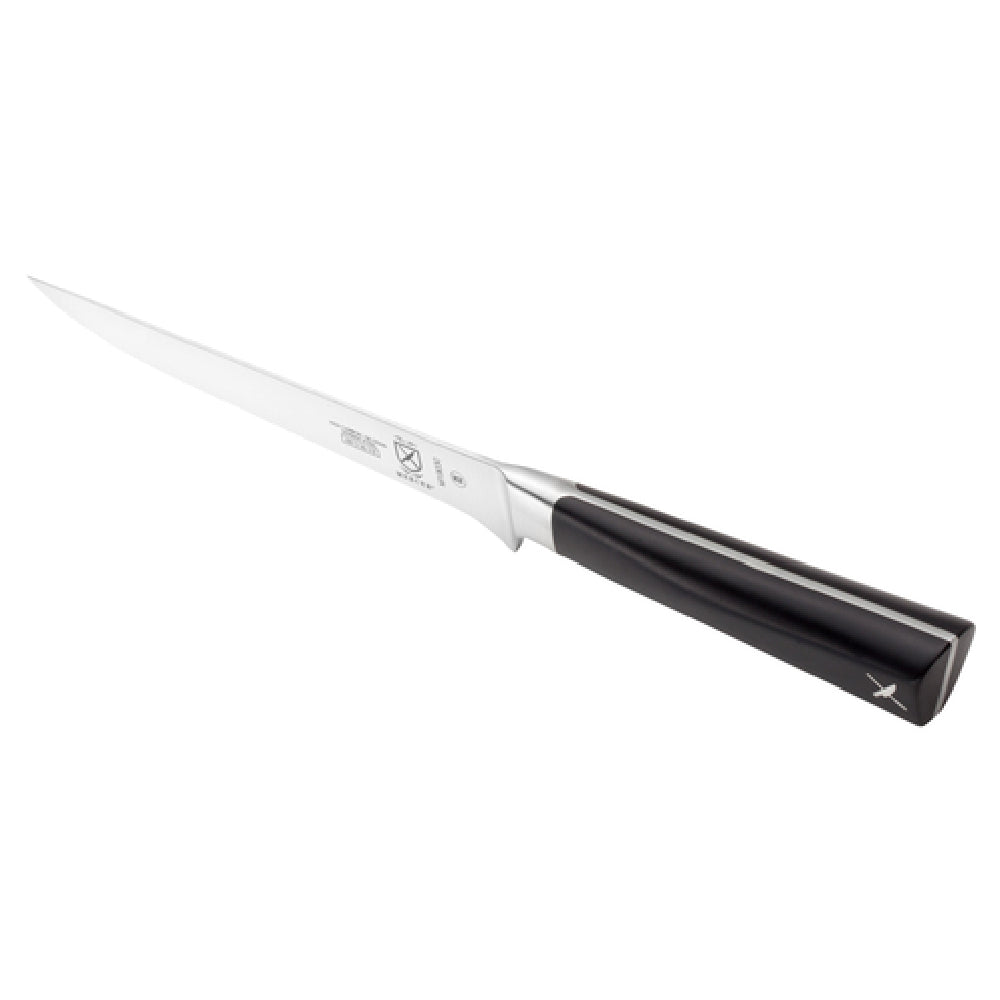 The Mercer Culinary M19030 ZüM® Boning Knife 6" Stiff is a meticulously crafted utensil, essential for culinary professionals who demand precision and durability. This knife is a one-piece precision-forged tool made from high carbon German steel, renowned for its sharpness and strength, ensuring optimal performance in the kitchen. The 6-inch stiff blade is ideal for deboning meats, poultry, and fish, providing the necessary rigidity for detailed work and easy maneuverability, making it a versatile choice for different market segments within the food industry, from butchers to gourmet chefs. Additionally, the knife features an ergonomically designed POM handle, which is constructed to enhance comfort and reduce hand fatigue during extended use, highlighting its user-friendly design. The Mercer Culinary M19030 ZüM® Boning Knife is NSF certified, assuring users of its adherence to rigorous public health and safety standards. Its robust construction and ergonomic features cater to the unique demands of professional kitchens, maintaining high standards of hygiene and efficiency. This knife exemplifies the perfect fusion of traditional craftsmanship and modern innovation, designed to meet the high expectations of culinary experts and enhance their cutting precision and efficiency.