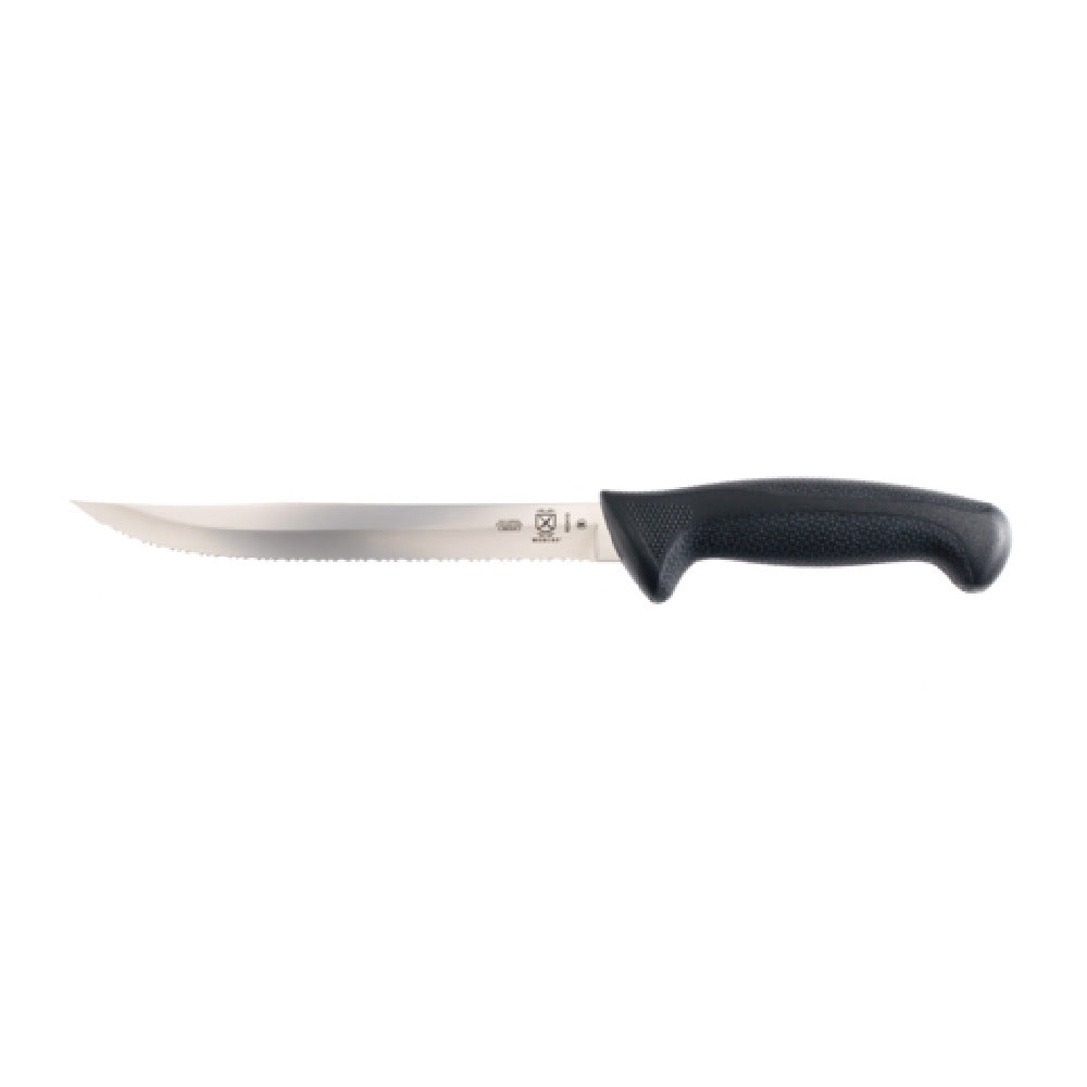 The Mercer Culinary M23410 Millennia® Slicer 8" Tiger Edge is a meticulously designed kitchen tool, catering to both professional chefs and culinary enthusiasts with precision and ease. Engineered from high carbon Japanese steel, this slicer ensures long-lasting sharpness and durability, making it a reliable companion for intricate slicing tasks. The blade, with its unique Tiger Edge, offers enhanced slicing performance, ideal for a variety of foods. Crafted for safety and comfort, the slicer boasts a black non-slip Santoprene® and polypropylene slim handle, engineered to reduce hand fatigue during extended use. The handle is designed with textured finger points and a protective finger guard, providing a secure grip and minimizing the risk of accidents in a fast-paced kitchen environment. This product adheres to NSF standards, emphasizing its commitment to public health and safety. The Mercer Culinary M23410 Millennia® Slicer is not just a tool but a versatile asset in the culinary industry, offering unparalleled precision and ergonomic design for an elevated slicing experience. Whether in a bustling restaurant kitchen or a home-cooking setting, this slicer stands out as a testament to quality craftsmanship and functional design excellence.