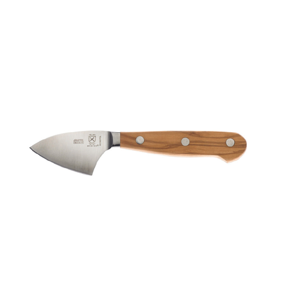 The Mercer Culinary M23607OL Renaissance 2 3/4" Parmesan Cheese Knife is an exceptional tool designed for precision and durability, catering to culinary professionals and enthusiasts alike. This cheese knife is meticulously crafted as a one-piece precision-forged instrument, embodying robustness and longevity. It features a triple-riveted design that enhances structural integrity, ensuring reliable performance in demanding kitchen environments. Made from high-carbon German steel, the blade is engineered to provide exceptional sharpness and edge retention, making it an ideal choice for slicing through hard cheeses like Parmesan. The ergonomic olive wood handle not only adds a touch of elegance but also provides a comfortable and secure grip, allowing for effortless handling and control. This combination of superior materials and thoughtful design results in a cheese knife that meets the high standards of quality expected by professionals while also appealing to home cooks who appreciate fine craftsmanship in their kitchen tools. The Mercer Culinary M23607OL stands out in its category, promising a blend of functionality and aesthetic appeal that is perfect for cheese lovers, gourmet chefs, and anyone seeking a reliable utensil for precise cheese preparation in various culinary settings.