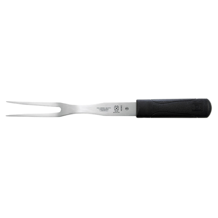 The Mercer Culinary M23800 Millennia® Cooks Fork is a precision-crafted kitchen tool, notable for its 8-inch blade and an overall length of 13-1/2 inches, making it a versatile choice for culinary professionals. This cooks fork features a stamped, high-carbon steel construction, which ensures durability and resistance to rust and stains, critical for maintaining long-lasting sharpness and peak performance in demanding kitchen environments. The polypropylene handle offers a secure and comfortable grip, enhancing user safety and reducing hand fatigue during prolonged use. Certified by the NSF, this cooks fork adheres to the highest standards of safety and sanitation, making it suitable for use in various food service establishments. The Mercer Culinary M23800 Millennia® Cooks Fork is an essential tool for chefs, providing exceptional control and precision for lifting, carving, and serving dishes. Its robust construction and ergonomic design cater to the needs of both professional chefs and home cooking enthusiasts, allowing for efficient operation in diverse culinary settings. This cooks fork exemplifies quality and reliability, making it a valuable addition to any kitchen's utensil collection.
