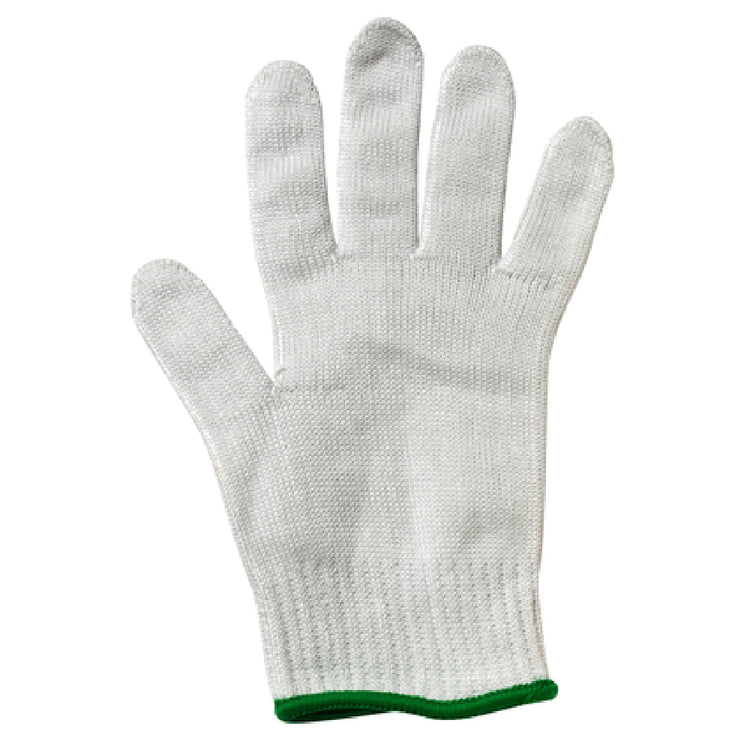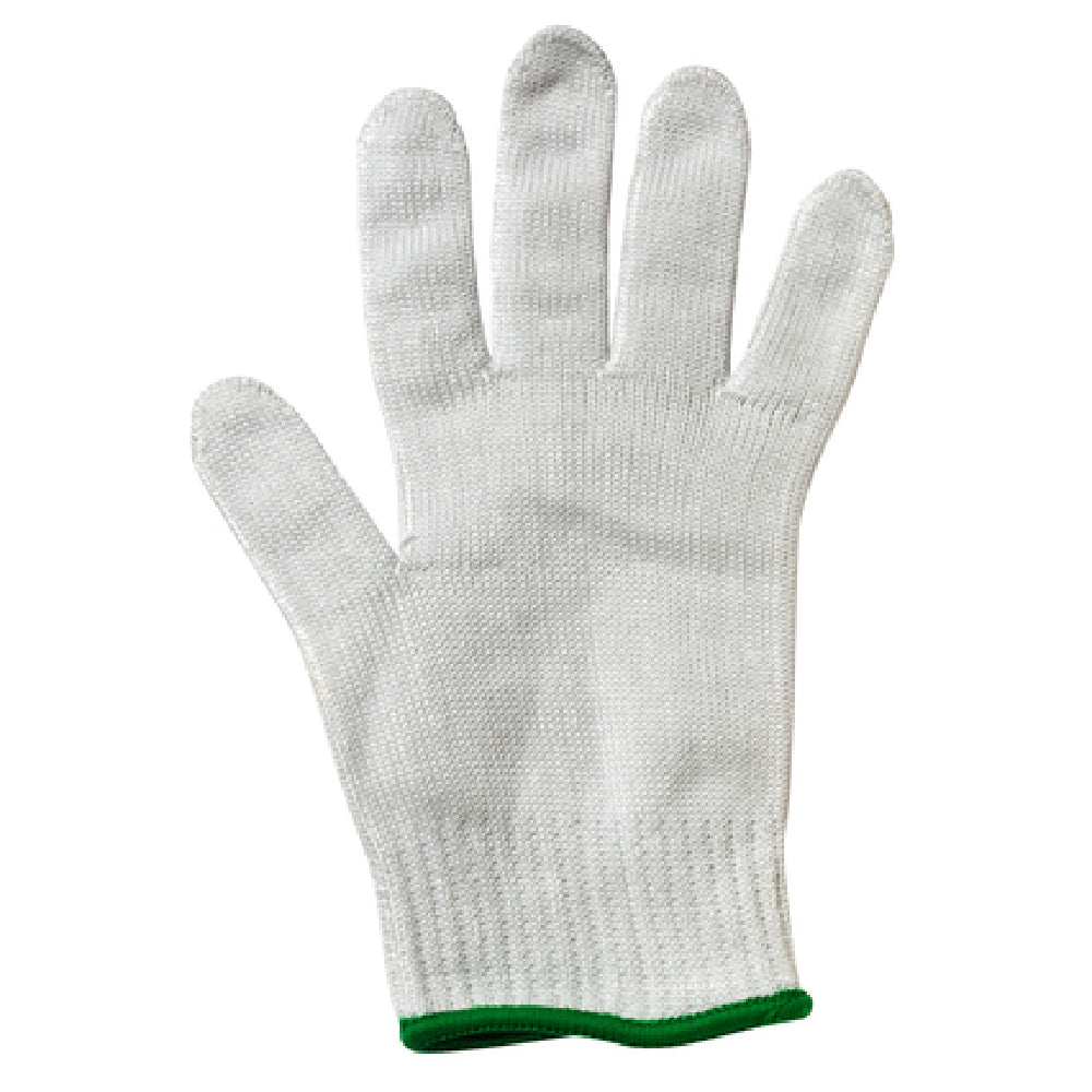 The Mercer Culinary M33413M Millennia® Cut Glove Size M 10 Gauge is an essential protective tool for culinary professionals, providing ANSI level A5 cut protection that is crucial in high-paced kitchen environments. This versatile glove fits both left and right hands, accommodating various user preferences and ensuring flexibility in use. Crafted with FDA approved materials, it meets stringent safety standards and incorporates stainless steel reinforced construction for enhanced durability. The glove is washable and bleach safe, allowing for easy maintenance while upholding hygiene standards critical in food preparation settings. A distinctive color-coded cuff is present, with a green cuff that indicates the glove size, simplifying the process of selecting the right fit for different users. Its white design with green cuff adds a touch of visibility and style. The 10-gauge construction adds an extra layer of protection without compromising on dexterity, making it suitable for tasks requiring precision. Ideal for chefs, food service workers, and home cooks, the Mercer Culinary M33413M Millennia® Cut Glove is a versatile safety solution tailored to meet the demanding needs of the culinary industry, enhancing safety and efficiency in food handling and preparation tasks.
