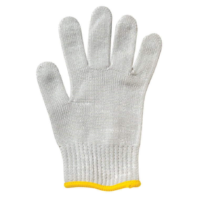 The Mercer Culinary M33413XS Millennia® Cut Glove Size XS 10 Gauge is a versatile protective glove engineered for both left and right hand use, making it suitable for various culinary and industrial applications. Its stainless steel reinforced construction guarantees durability and long-lasting performance. This glove is crafted from FDA-approved materials, ensuring safety and compliance with health standards. With an impressive ANSI level A5 cut protection, the glove provides superior defense against cuts, enhancing safety in environments where sharp tools are frequently handled. The glove’s design includes a washable and bleach-safe feature, facilitating easy maintenance and hygiene. A color-coded cuff, specifically white with a gold band, indicates its size as extra small, ensuring quick and efficient identification in busy settings. The Mercer Culinary M33413XS is constructed with a 10-gauge thickness, providing a balanced blend of flexibility and protection. This cut glove is an essential tool for professionals who prioritize safety without compromising on comfort and functionality. Its specification makes it particularly valuable in culinary settings, food processing industries, and other environments where cut resistance is crucial. The precise engineering and quality materials of the Mercer Culinary M33413XS make it a reliable choice for safeguarding hands during demanding tasks.