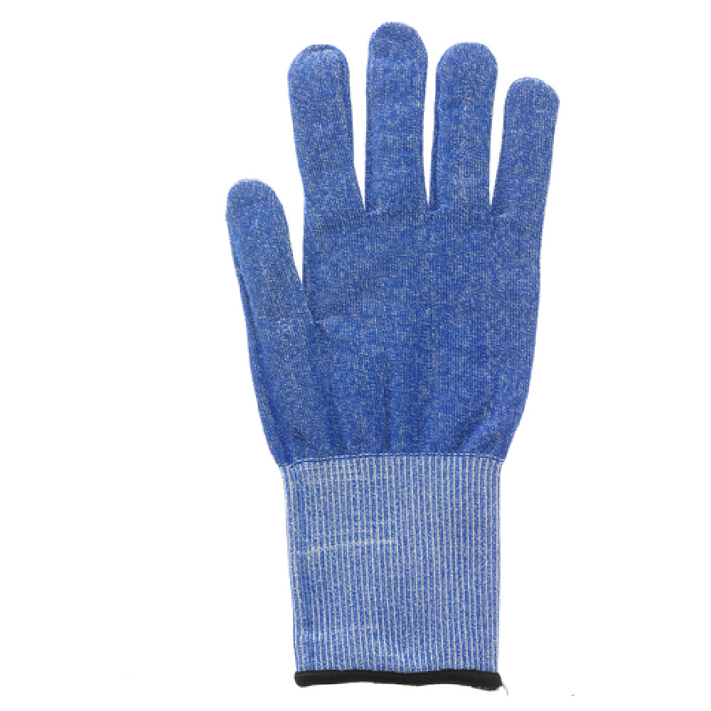 The Mercer Culinary M33416BL1X Millennia® Fit Cut Glove Size 1X 18 Gauge is a cutting-edge safety accessory engineered for culinary professionals requiring precision and protection. With its ANSI level A4 cut protection, this glove is crafted from ultra-thin polyethylene, ensuring maximum dexterity without compromising on safety. Designed to fit both left and right hands, its flexible construction accommodates all users. The glove's striking blue color with a black cuff not only enhances visibility but also adds an aesthetic touch to professional kitchen attire. Washable and bleach safe, the Mercer Culinary glove maintains high hygiene standards, essential for food service environments. Additionally, the glove is manufactured using FDA approved materials, underscoring its compliance with health and safety regulations. Its 18-gauge fabric strikes a balance between durability and comfort, making it suitable for long hours of use in demanding kitchen settings. This versatile glove is an essential tool for various segments within the culinary industry, particularly those prioritizing safety and efficiency. Its technical specifications and practical design features collectively highlight its unique value proposition, making it a sought-after choice for chefs and culinary professionals seeking reliable hand protection without sacrificing agility.