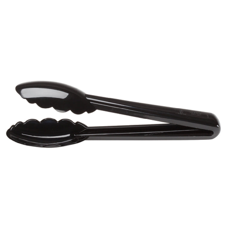 The Mercer Culinary M35100BK Hell's Tools® Utility Tongs 9-1/2" Overall Length Scalloped Ends are an essential tool for both professional chefs and home cooking enthusiasts. With a 9-1/2 inch overall length, these tongs are designed for precision and versatility in the kitchen. They feature scalloped ends, allowing for secure handling of various food items. Constructed from high temperature and impact-resistant nylon, these tongs are rated to withstand temperatures up to 430°F, ensuring durability and reliability in high-heat cooking environments. The one-piece construction enhances their structural integrity, reducing the risk of breakage or wear over time. The black color adds a sleek, professional aesthetic, complementing any kitchen decor. Moreover, these tongs are NSF certified, which underscores their adherence to rigorous health and safety standards. This makes them suitable for use in commercial food service settings where hygiene and safety are paramount. The Mercer Culinary M35100BK Hell's Tools® Utility Tongs are not just a kitchen accessory, but a tool engineered for performance, making them an ideal choice for diverse culinary applications ranging from grilling to serving and more.