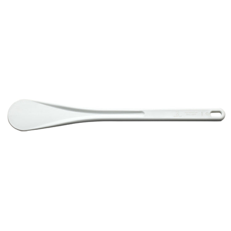 The Mercer Culinary M35121 Hell's Tools® Spootensil® 11-7/8" High Temperature is a specialized kitchen tool designed for both home cooks and professional chefs who require precision and durability in high-heat environments. Crafted from impact-resistant nylon, this Spootensil® is engineered to withstand temperatures up to 430°F, making it ideal for handling hot foods without the risk of melting or warping. Its white finish not only provides a clean and professional appearance but also complies with NSF standards for safety and quality, ensuring it meets rigorous public health requirements. The 11-7/8" length of this Spootensil® provides ample reach and control, making it versatile for various cooking tasks in different kitchen settings. The Mercer Culinary Hell's Tools® Spootensil® is a valuable tool for any culinary environment, offering a combination of resilience and functionality that supports efficiency and precision in food preparation. Whether in a bustling restaurant kitchen or a home cooking space, its robust design and high-temperature resistance make it a reliable choice for those seeking a tool that can handle the demands of high-heat cooking.