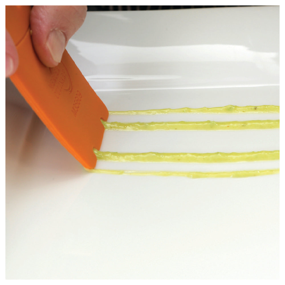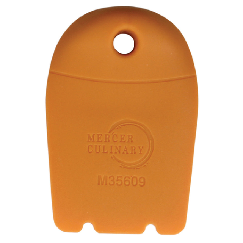 The Mercer Culinary M35609 Silicone Plating Wedge is a precision tool designed for culinary professionals, featuring detailed specifications that cater to various industry needs. Its innovative 4mm horseshoe arch and overall dimensions of 3/4" x 2-1/2" provide a unique plating experience, enhancing presentation aesthetics. The wedge boasts a 2-1/4" wide wedge tip, which is complemented by a recessed thumb rest, ensuring ergonomic handling and precise application. Made from food-safe silicone, this plating wedge can withstand heat up to 480°F (250°C), making it suitable for a range of temperature-critical tasks. The color-coded feature facilitates easy identification within a busy kitchen environment, while the hanging hole and tapered end add convenience for storage and functionality. The dishwasher-safe design ensures easy cleaning, supporting high hygiene standards. Packaged as 12 per case, the Mercer Culinary M35609 Silicone Plating Wedge is tailored for chefs who demand efficiency and precision in their culinary presentations.