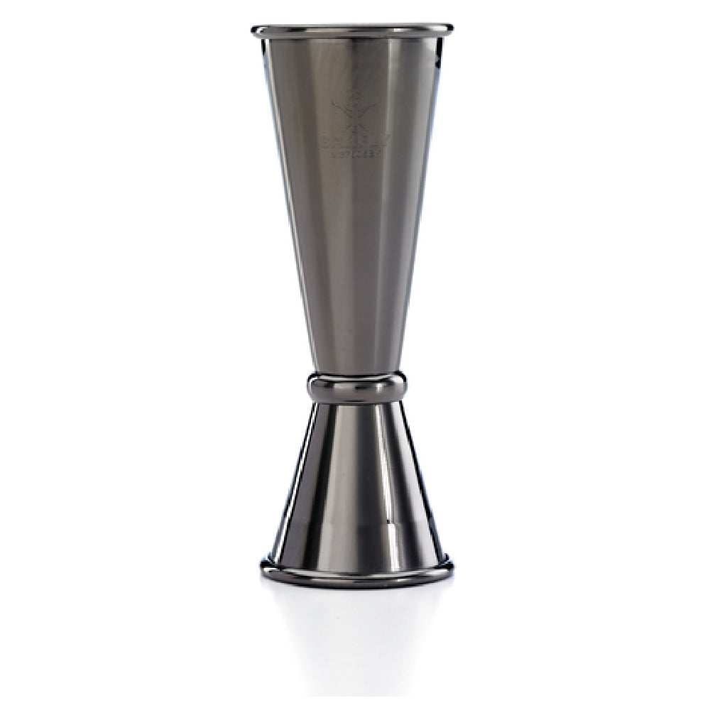 The Mercer Culinary M37005BK Barfly® Japanese Style Jigger - 1 Oz. & 2 Oz. With Internal Marking Lines - is a precisely crafted tool for mixologists and bartenders seeking precision in their craft. This jigger is constructed from an 18/8 stainless steel core, ensuring durability and resistance to corrosion, a vital feature for rigorous use in high-volume bar settings. Its gun metal black-plated finish not only adds a sleek, modern aesthetic but also enhances its sturdiness, making it a stylish yet functional addition to any bar setup. The internal marking lines allow for accurate measurements, offering versatility with 1 oz. and 2 oz. capacities. This dual-capacity feature caters to a variety of cocktail recipes, ensuring consistency in drink preparation. Ideal for professional bartenders and cocktail enthusiasts alike, the Japanese style design of this jigger emphasizes precision and elegance, fitting seamlessly into diverse market segments within the hospitality industry. Whether in a bustling restaurant bar or a sophisticated home bar setting, the Mercer Culinary M37005BK Barfly® Jigger stands out as a reliable tool, combining functionality with a refined style that enhances the overall cocktail crafting experience.