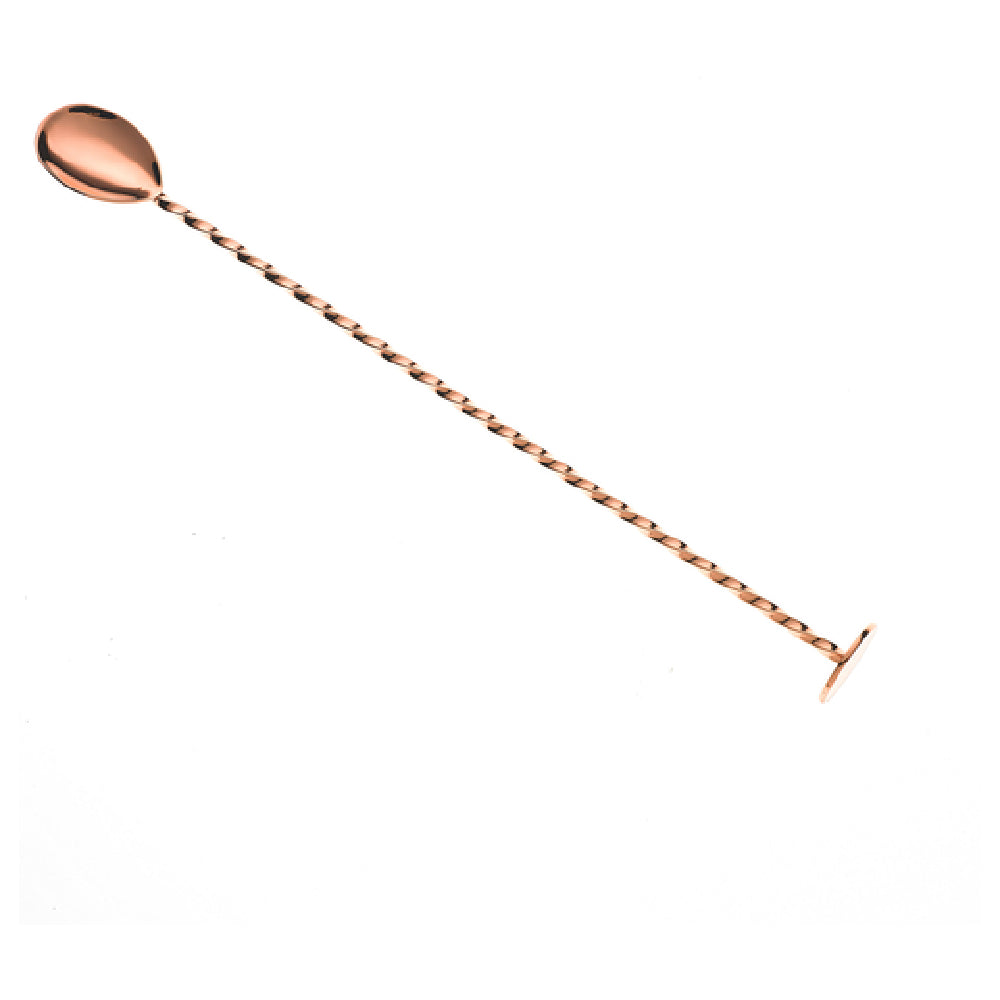 The Mercer Culinary M37018CP Barfly® Bar Spoon with Muddler 11-13/16" (30 cm) is a meticulously crafted tool designed for professional bartenders and cocktail enthusiasts alike. This bar spoon features a flat-top end and a twisted stem, both contributing to its functional elegance and ease of mixing. Constructed from high-quality 18/8 stainless steel, the spoon ensures durability and resistance to corrosion, making it an enduring addition to any bar setup. Its copper-plated finish not only adds a touch of sophistication but also enhances its visual appeal, making it suitable for upscale venues. The one-piece design of the Barfly® Bar Spoon ensures seamless construction, offering a sturdy and reliable performance during use. The inclusion of a muddler makes it a versatile tool, allowing bartenders to craft a variety of cocktails with precision. With its ideal length of 11-13/16" (30 cm), this bar spoon is perfectly balanced for stirring drinks in both tall and short glassware. Whether used in a high-end cocktail lounge or a bustling restaurant bar, the Mercer Culinary M37018CP Barfly® Bar Spoon with Muddler is a valuable asset for professionals seeking quality and efficiency in mixology.