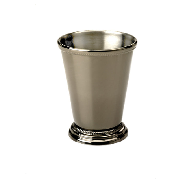 The Mercer Culinary M37032BK Barfly® Julep Cup is a stylishly designed 12 oz. cup, noted for its precision-crafted features. Measuring 3-1/2 inches in top diameter and standing 4-1/2 inches high, this cup is the epitome of quality and elegance combined. It showcases a beaded edge which adds a touch of sophistication, while its footed base ensures stability and balance, enhancing its functionality for professional use. The core of this Julep Cup is made from 18/8 stainless steel, a durable material known for its resistance to corrosion and staining. The gun metal black plated finish not only elevates its appearance but also provides an additional layer of protection, making it suitable for high-end cocktail presentation and service environments. This product is ideal for mixologists and bartenders who emphasize both aesthetic appeal and durability in their bar tools. Whether used in upscale bars, restaurants, or even at home for personal cocktail crafting, the Mercer Culinary M37032BK Barfly® Julep Cup offers a unique combination of visual appeal and reliable performance, catering to various market segments within the beverage industry.