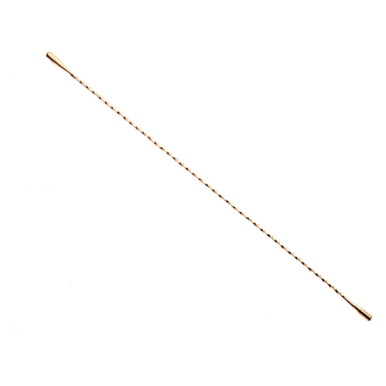The Mercer Culinary M37033CP Barfly® Double End Stirrer 17-1/8" Double End is a precision tool crafted for mixologists and bartenders who require both functionality and style. Measuring 17-1/8 inches, this double-ended stirrer is meticulously designed for optimum stirring efficiency in both long and short glasses. It features an 18/8 stainless steel core, ensuring durability and resistance to corrosion, making it a long-lasting addition to any professional bar setup. The copper-plated finish not only enhances its aesthetic appeal but also offers a sophisticated touch to complement high-end barware. This stirrer is particularly advantageous for those in the hospitality industry, where presentation and performance are critical. Its dual-end design allows for versatility, catering to the needs of bartenders who require different stirring techniques. Whether in a bustling cocktail lounge or an intimate home bar setting, the Mercer Culinary M37033CP Barfly® Double End Stirrer effortlessly combines practicality with elegance, providing a superior mixing experience. Its robust stainless steel core and elegant copper finish make it an attractive choice for industry professionals who demand reliable tools without compromising on style. This stirrer is a testament to superior craftsmanship, designed to enhance the cocktail-making process with precision and flair.