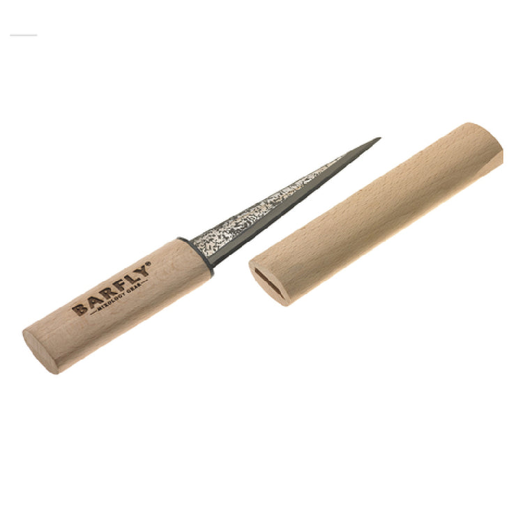 The Mercer Culinary M37063 Barfly® Japanese Ice Carving Knife - a specialized tool for precision ice carving - boasts a 4-inch blade with a flat edge, ideal for creating intricate designs and smooth surfaces. This knife is crafted from high-carbon stainless steel, known for its durability, sharpness, and resistance to corrosion, making it a reliable choice for professional mixologists and ice sculptors alike. The beech wood handle not only provides an ergonomic grip for comfortable handling but also adds a touch of elegance, making it an exquisite addition to any professional bar or culinary setting. Accompanied by a blade cover, this knife ensures safety and longevity when not in use. The Mercer Culinary M37063 is particularly well-suited for professionals in the hospitality industry who value precision and quality in their tools, enabling them to deliver exceptional artistry in ice presentation. Its premium materials and thoughtful design underscore its status as a top-tier choice for those who require both functionality and aesthetic appeal in their ice carving endeavors.