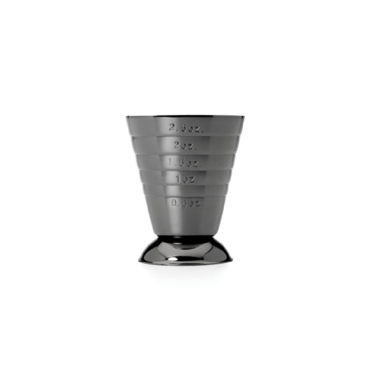 The Mercer Culinary M37069BK Barfly® Bar Measuring Cup is a precise and stylish tool for both professional and home bartenders. With a capacity of 2.5 oz./5 tbsp./7.5 ml., this measuring cup is designed with scored internal marking lines that enable accurate measurements for mixing beverages, making it essential for crafting cocktails with precision. The footed base provides stability on any surface, ensuring ease of use during busy service times. Constructed from durable stainless steel, it can withstand the rigors of repeated use in fast-paced environments. The gun metal black plated finish not only adds a sleek, modern aesthetic but also offers additional durability, making it a striking addition to any bar setup. This product caters to the needs of mixologists who require exact measurements for high-quality cocktail preparation in bars, restaurants, and personal use. The combination of functional design and elegant finish makes the Mercer Culinary M37069BK a valuable tool for enhancing the efficiency and presentation of beverage service in any setting.