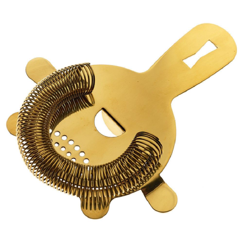 The Mercer Culinary M37071GD Barfly® Spring Bar Strainer is a premium tool designed for bartenders seeking durability and efficiency in their craft. With an overall length of 5-5/8 inches, this strainer stands out for its robust design and precise engineering. Constructed from an 18/8 stainless steel core, it ensures longevity and resistance to corrosion, providing a reliable performance in high-volume settings. The gold-plated finish not only adds an elegant touch but also enhances its durability and aesthetic appeal. This heavy-duty bar strainer features a 4-prong design, optimizing stability and control during use. Additionally, the replaceable spring feature allows for easy maintenance and adaptability over time, ensuring that the strainer remains functional even with prolonged use. A convenient hanging hole is integrated into the design, allowing for easy storage and quick access in busy bar environments. The Mercer Culinary M37071GD is a versatile tool ideal for professional bartenders in upscale cocktail bars, restaurants, or event venues, offering superior craftsmanship and practical functionality tailored to elevate the cocktail-making experience.