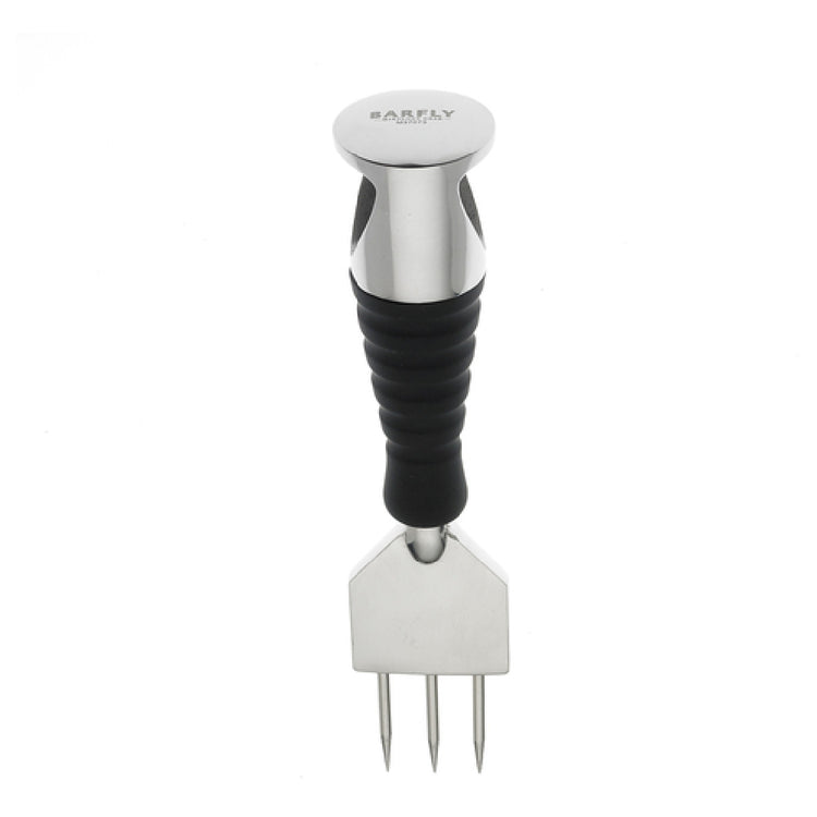 The Mercer Culinary M37073 Barfly® "The Claw" Ice Chipper is a meticulously designed tool favored in the bartending and culinary industries for its efficiency and precision. This ice chipper boasts an 8-1/4" cast stainless steel head, which is both durable and resistant to corrosion, making it a long-lasting addition to any professional setting. It features three sharp prongs that efficiently break through ice, providing clean and precise chipping that enhances the aesthetic and texture of cocktails. The thoughtfully designed rubber handle grip ensures comfortable handling and reduces hand fatigue during extended use, while the incorporated hanging hole offers convenient storage options. This product is particularly valuable in upscale bars and restaurants where presentation and quality are paramount, as well as in culinary environments where ice sculpting and precision are required. Its robust construction and practical features cater to the needs of both professional bartenders and chefs, making it an indispensable tool in high-demand service environments. The Mercer Culinary M37073 Barfly® "The Claw" Ice Chipper reflects a commitment to quality and performance, tailored to meet the diverse needs of professionals in the food and beverage industry.