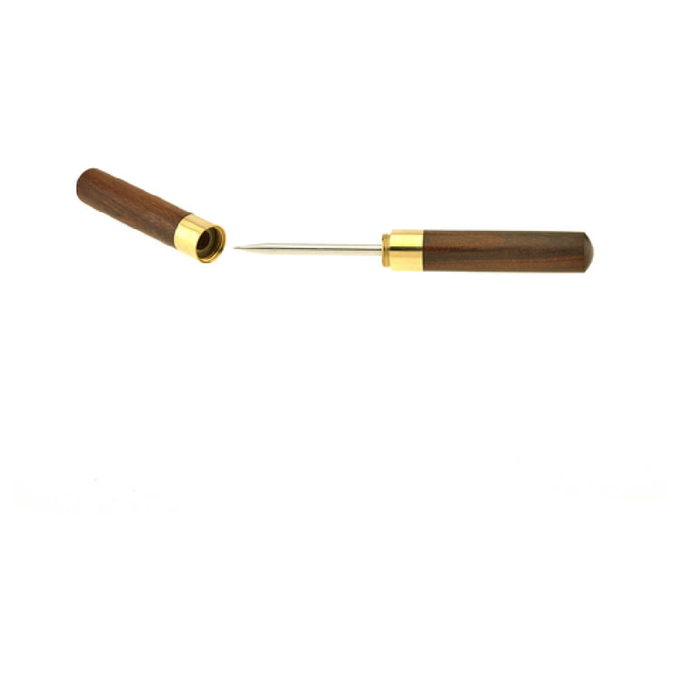 The Mercer Culinary M37078 Barfly® Portable Ice Pick 6-3/4" Hardened Blade Point is an exquisitely crafted tool designed for precision and durability, making it an essential accessory in the world of professional bartending and culinary artistry. Featuring a hardened blade point, this item ensures robust performance in breaking and carving ice with ease and accuracy. The 6-3/4" blade is constructed from high-quality stainless steel, offering resistance to rust and corrosion, thereby extending its longevity. The natural wood handle provides a comfortable grip, enhancing the user's control and safety during use. A brass ferrule not only adds an element of aesthetic appeal but also strengthens the connection between the blade and handle, ensuring long-term reliability. This ice pick is particularly valued in mixology and food preparation sectors, where it serves to deliver perfect ice shards or chips that can elevate the presentation and texture of beverages and dishes. Whether utilized in high-end bars, restaurants, or for personal use by cocktail enthusiasts, the Mercer Culinary M37078 offers a fusion of functionality and elegance, making it a standout tool in any setting requiring precision ice handling.