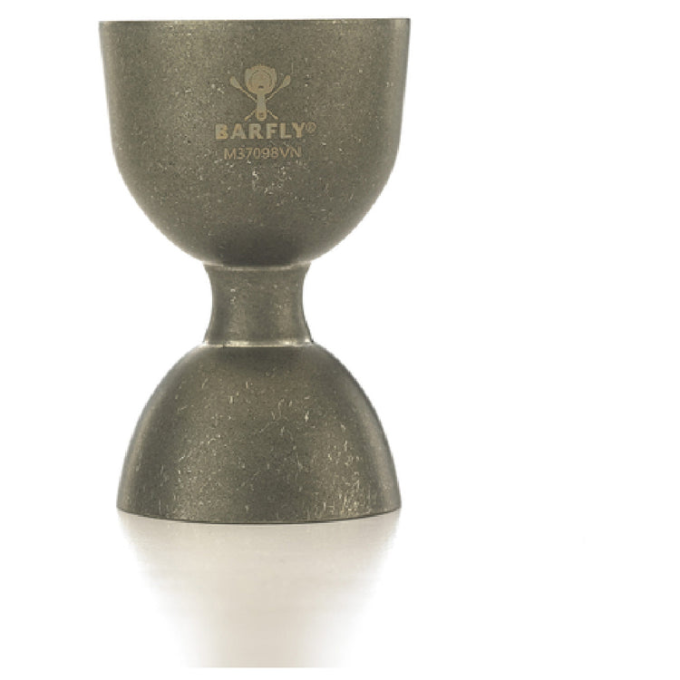 The Mercer Culinary M37098VN Barfly® Straight Rim Jigger 25 & 50 Ml (0.67 & 1.69 Oz.) Heavy Duty is a precision tool crafted for mixologists and beverage professionals. This one-piece jigger is constructed from 18/8 stainless steel, renowned for its durability and resistance to corrosion, ensuring longevity and reliability in high-volume environments. Its vintage finish not only adds a touch of classic elegance to any bar setup but also enhances its grip and handling. The jigger features internal marking lines for both 25 ml and 50 ml measurements, equivalent to 0.67 oz. and 1.69 oz., respectively, allowing for accurate and efficient portioning. This makes it indispensable in crafting perfectly balanced cocktails, enhancing both speed and precision in service. The heavy-duty design underscores its capability to withstand rigorous daily use, catering to the demands of busy bars, restaurants, and hospitality venues. Its straight rim design ensures a clean pour, minimizing spillage and waste. The Mercer Culinary M37098VN Barfly® jigger is an essential tool for professional bartenders seeking precise measurement and a robust, stylish addition to their barware collection, catering to diverse market segments within the culinary and beverage industry.