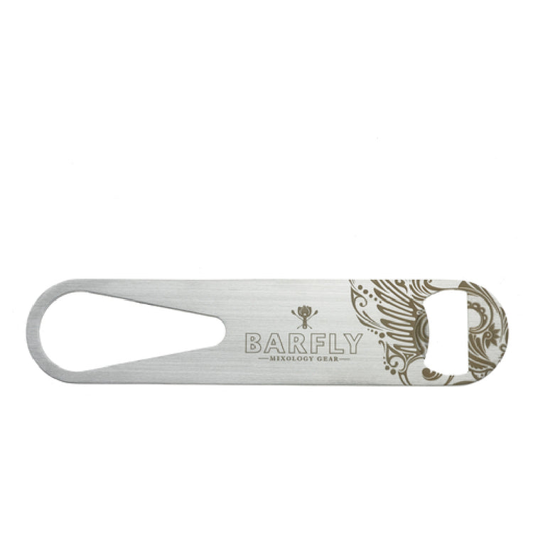 The Mercer Culinary M37122 Barfly® Speed Bottle Opener - 7"L Handheld is a must-have tool for professionals in the hospitality and beverage industry. Crafted from durable stainless steel, this handheld bottle opener is designed for speed and efficiency, making it an essential accessory for bartenders and mixologists. With a length of 7 inches, it offers a comfortable grip and leverage, allowing for quick and effortless opening of bottles. The stainless steel construction not only ensures longevity but also provides a sleek, professional appearance that complements any bar setting. Its compact and lightweight design makes it easy to carry and store, making it suitable for both high-volume bars and personal use. The Barfly® Speed Bottle Opener is engineered to meet the rigorous demands of a fast-paced environment, ensuring reliability and performance. Whether in a bustling nightclub or a quiet restaurant, this bottle opener serves as a versatile and dependable tool, enhancing the efficiency and service quality of beverage operations. Its straightforward design and robust build cater to the needs of various market segments within the industry, delivering a product that balances functionality with style.