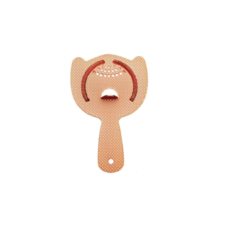 The Mercer Culinary M37203CP Barfly® Diamond Lattice Spring Bar Strainer 6" Overall Length is a precision-crafted tool tailored for the discerning bartender. With its heavy-duty construction, this bar strainer ensures durability and reliability in high-demand environments. The strainer features a distinctive 2-prong design that facilitates easy and efficient filtration of cocktails, enhancing both the flavor and presentation. Its replaceable spring is a notable feature that extends the lifespan of the product, providing a cost-effective solution for long-term use. Crafted from 18/8 stainless steel, the strainer boasts a copper-plated finish that not only adds a touch of elegance but also offers resistance to corrosion, ensuring it remains a staple in your barware collection. The inclusion of a hanging hole facilitates convenient storage, making it easily accessible during busy service hours. With a total length of 6 inches, this bar strainer is compact yet effective, making it suitable for a variety of bar settings, from upscale cocktail bars to home enthusiasts looking to elevate their craft. The combination of aesthetic appeal and functional design makes the Mercer Culinary M37203CP a versatile choice for professionals across the industry, delivering exceptional performance in cocktail preparation.
