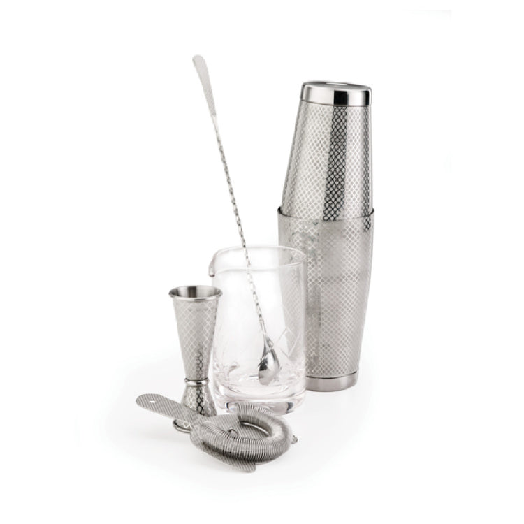 Mercer Culinary M37207 Barfly® Diamond Lattice 5-piece Cocktail Mixing Set Includes (1) Shaker Set (18 & 28 Oz Shakers)