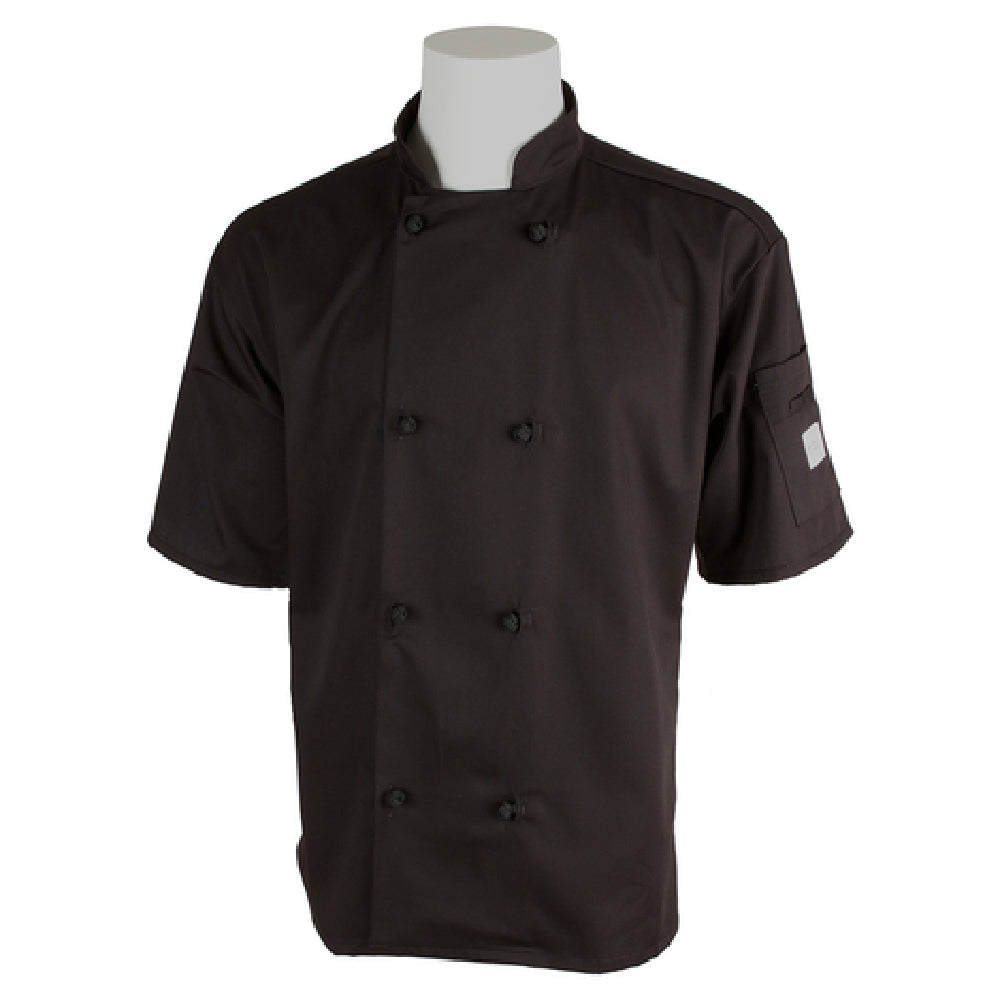 Mercer Culinary M60014BK2X Millennia® Unisex Jacket Short Sleeve (8) Cloth Knot Buttons is designed with precision and practicality for culinary professionals in mind. This jacket combines a 65/35 poly-cotton twill fabric, offering a balance of durability and comfort that is essential in fast-paced kitchen environments. Its unisex design, enhanced by the sleek black color, makes it suitable for all kitchen staff, providing a professional yet approachable appearance. The jacket features short sleeves, catering to the need for ease of movement and breathability during long working hours. A standout characteristic is the inclusion of eight cloth knot buttons, which not only add a touch of classic elegance but also ensure a secure fit. Additionally, the shoulder pocket is a practical feature, ideal for chefs who need quick access to essential tools or notes. Tailored in size 2X, this jacket is specifically crafted to accommodate a wide range of body types, ensuring that comfort is not sacrificed for style. The Mercer Culinary Millennia® jacket, with its meticulous design and functional attributes, is an invaluable addition for culinary professionals seeking both form and functionality in their kitchen attire.