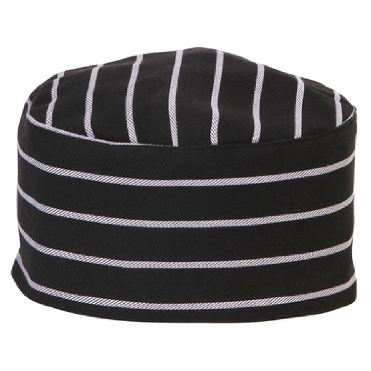 The Mercer Culinary M60075BCS Millennia® Baker's Skull Cap - no mesh - adjustable velcro closure is a specialized garment designed for culinary professionals seeking comfort and functionality. This cap is skillfully crafted from a 65/35 poly/cotton twill blend, ensuring durability and a comfortable fit for long hours in the kitchen. The absence of mesh in its design enhances its sleek appearance, while the adjustable velcro closure offers a customizable fit for diverse head sizes, ensuring a secure wear during busy kitchen activities. Available in a sophisticated black Chalk Stripe pattern, this baker's skull cap provides a professional and polished look, perfect for bakers, chefs, and culinary students. The Mercer Culinary M60075BCS combines style with practicality, making it a valuable accessory for culinary environments where presentation and hygiene are paramount. Its straightforward design caters to various segments within the food industry, from bustling restaurant kitchens to educational culinary programs, offering a consistent and uniform headwear solution. The use of poly/cotton twill fabric provides breathability and resilience, essential for maintaining comfort during extended periods of use. The Mercer Culinary M60075BCS Millennia® Baker's Skull Cap is an essential addition to any culinary wardrobe, emphasizing both functionality and professional aesthetics.
