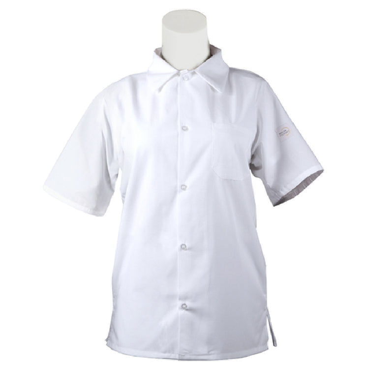 Mercer Culinary M60200WH5X Millennia® Unisex Cook Shirt (5) Traditional Buttons Mesh Back