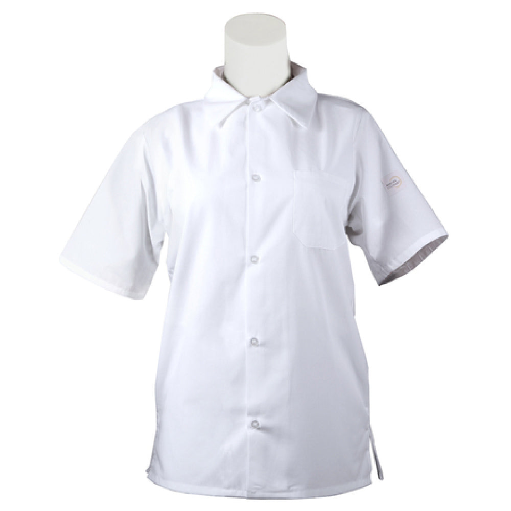 Mercer Culinary M60200WH7X Millennia® Unisex Cook Shirt (5) Traditional Buttons Mesh Back