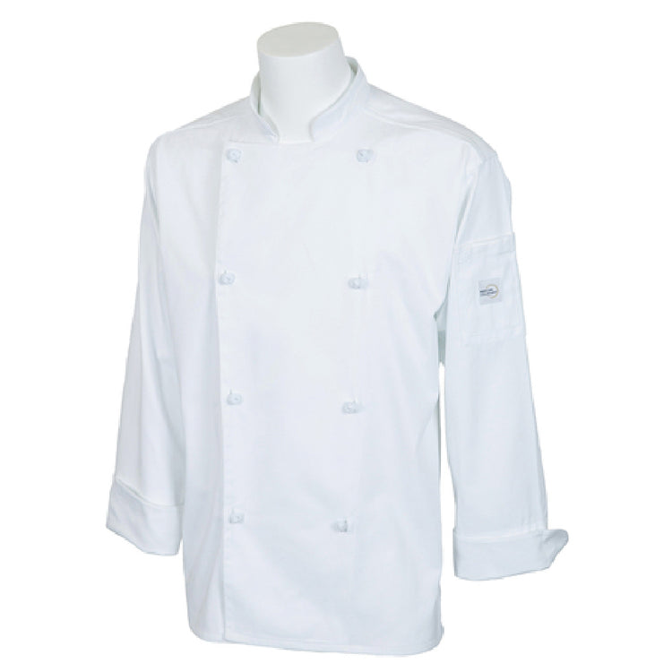 Mercer Culinary M61020WH2X Genesis Unisex Chef Jacket (8) Cloth Knot Buttons Utility Shoulder Pocket