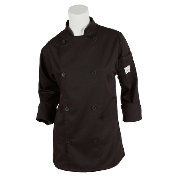 Mercer Culinary M61030BKM Genesis Women's Chef Jacket (8) Traditional Buttons Utility Shoulder Pocket
