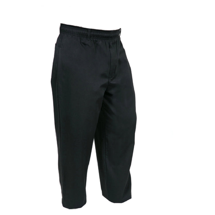 The Mercer Culinary M61060BK1X Genesis Unisex Chef Pants are engineered for culinary professionals seeking comfort and utility. Featuring an elastic waist and belt loops, these chef pants ensure a secure fit during long kitchen shifts. The inclusion of a zipper adds convenience, while four pockets provide ample storage for essential tools and personal items. The finished cuffs add a touch of polish to the design, making them suitable for diverse kitchen environments. Constructed from a durable 65/35 poly-cotton twill blend, these pants offer a balance of comfort and resilience, ideal for the demanding conditions of a professional kitchen. The classic black color and unisex design cater to a wide range of culinary personnel, from seasoned chefs to kitchen trainees, ensuring a practical and professional appearance. Available in size 1X, these chef pants meet the needs of varying body types, highlighting Mercer Culinary's commitment to inclusivity and functionality. Whether worn in bustling restaurants, catering events, or culinary schools, these chef pants are crafted to support the daily needs of culinary experts, offering a reliable and stylish option for those dedicated to their craft.