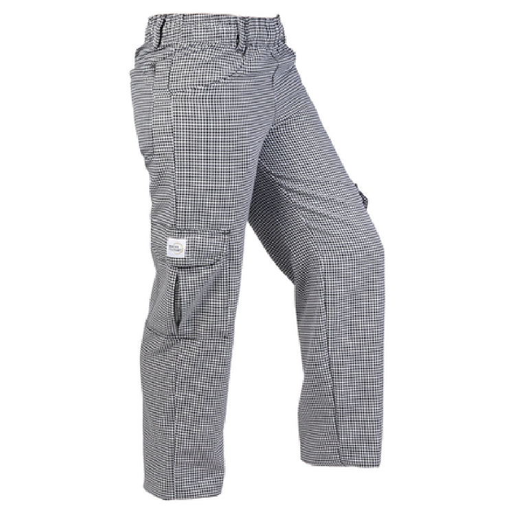 Mercer Culinary M61071HTL Genesis Women's Cargo Pants are designed with both functionality and style in mind, making them an excellent choice for culinary professionals seeking comfort and practicality. These pants feature an elastic waist and belt loops, providing a secure and adjustable fit for various body types. The six-pocket design, including leg pockets with Velcro flaps, offers ample storage for essential tools and personal items, enhancing convenience during busy kitchen shifts. Crafted from a 65/35 yarn-dyed poly/cotton blend, these pants combine durability with a breathable feel, ensuring long-lasting wear and comfort in demanding environments. The black and white hounds tooth pattern adds a classic and professional touch, while the finished cuffs contribute to a polished appearance. Available in a large size, the Mercer Culinary M61071HTL Genesis Women's Cargo Pants are an ideal wardrobe addition for female chefs, line cooks, and culinary students who prioritize both utility and style. Whether working in a bustling restaurant kitchen or attending culinary classes, these pants offer the perfect blend of practicality and sophistication, catering to the diverse needs of women in the culinary industry.