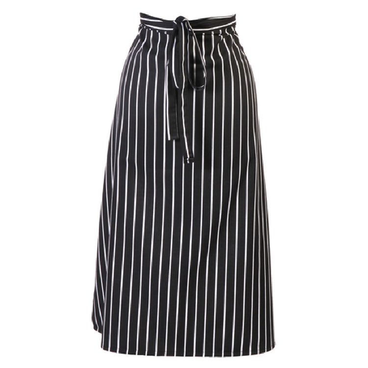 The Mercer Culinary M61130BCS Genesis Bistro Apron 33" x 29" 2-sided is a versatile and practical addition to any culinary professional's wardrobe. Designed with precision, this apron measures 33 inches in length and 29 inches in width, providing ample coverage for chefs and kitchen staff alike. Its unique 2-sided design enhances functionality and ease of use, allowing for quick adjustments and a secure fit. Crafted from a durable 65-35 poly-cotton twill blend, this apron offers the ideal balance of comfort and resilience, ensuring it withstands the rigors of daily kitchen life while remaining comfortable to wear for extended periods. The black Chalk Stripe pattern not only adds a touch of sophistication and style but also serves as a practical choice for maintaining a clean and professional appearance. Notably, this bistro apron is designed without pockets, offering a streamlined look and minimizing potential obstructions during food preparation. Ideal for use in competitive culinary environments, from high-end restaurants to bustling catering events, the Mercer Culinary M61130BCS Genesis Bistro Apron is a reliable choice that meets the demands of various industry segments, from professional chefs to culinary students, providing both aesthetic appeal and functional utility.
