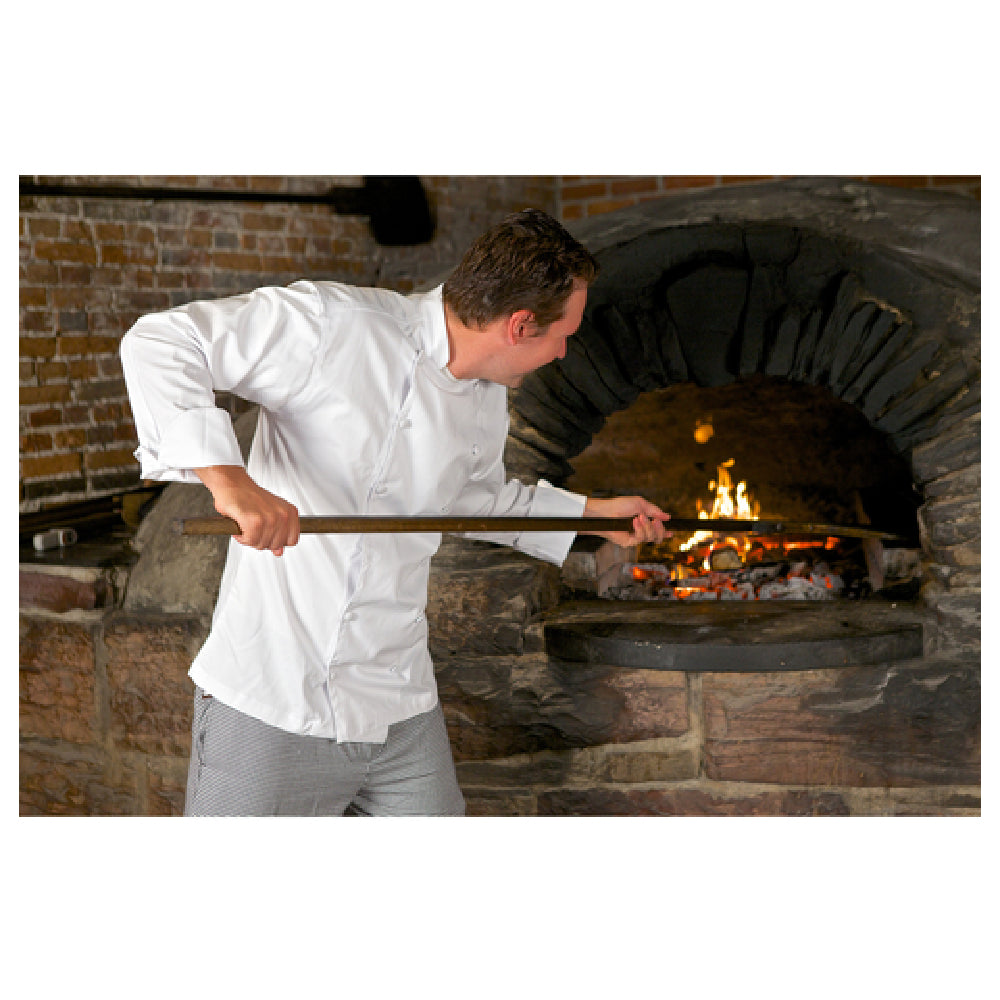 The Mercer Culinary M62010WHL Renaissance Men's Jacket is a meticulously crafted garment designed for professionals who prioritize both style and functionality. This jacket features 12 cloth-covered buttons and a scoop neck, providing a classic yet modern appearance suitable for any culinary environment. Constructed from a durable 65/35 poly/cotton twill blend, it offers both comfort and resilience, ensuring it withstands the rigors of a busy kitchen. The utility shoulder pocket is a practical addition, offering convenient storage for essential tools or accessories, while the earbud opening integrates seamlessly for those who appreciate multitasking with music or communications. Available in a large size and a pristine white color, this jacket not only complements the chef's attire but also adheres to the professional aesthetic standards of the culinary industry. The Mercer Culinary M62010WHL Renaissance Men's Jacket is ideal for chefs who desire a blend of traditional elegance and modern practicality, making it a valuable investment for culinary professionals across various market segments, from upscale restaurants to educational institutions. Its thoughtful design elements and high-quality materials make it a standout choice for those seeking a high-performing, stylish addition to their professional wardrobe.