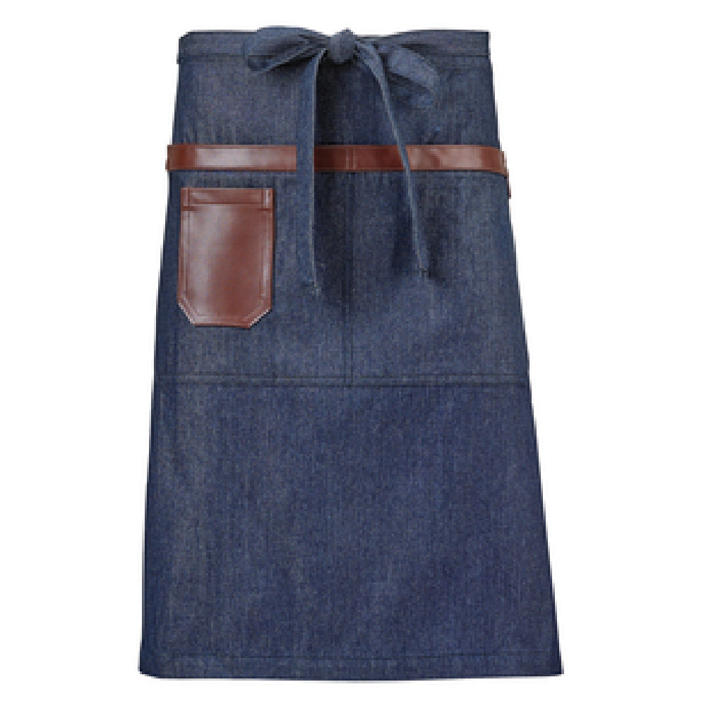The Mercer Culinary M63204DEN Metro Edge® Mid-Bistro Apron is a meticulously designed garment measuring 21" x 26", tailored to meet the diverse needs of culinary professionals across various industry segments. It features a large 2-section pocket, complemented by a smaller leather pocket, providing ample storage for essential tools and accessories. The inclusion of a leather towel holder further enhances its practicality, ensuring that chefs and kitchen staff can keep their workspace organized and efficient. Crafted from a fancy-weave, lightweight 100% cotton denim, this apron offers durability while maintaining comfort during long kitchen shifts. The indigo fabric, accented with brown leather details, adds a touch of sophistication and style, making it not only a functional piece but also a statement of professional attire. The thoughtful design caters to both aesthetic and practical requirements, rendering it a versatile accessory for chefs, bartenders, and hospitality workers who appreciate quality and style in their workwear.